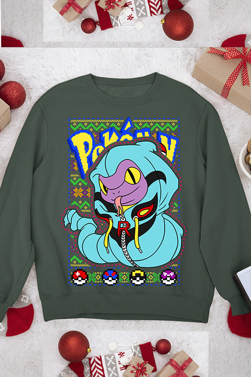#ChristmasSweater #UglyChristmasSweater #EkansPokemon #HolidayFashion #PokemonStyle #ChristmasEkans #PokemonChristmas #UglyDesign #FestivePokemon #EkansSweatshirt