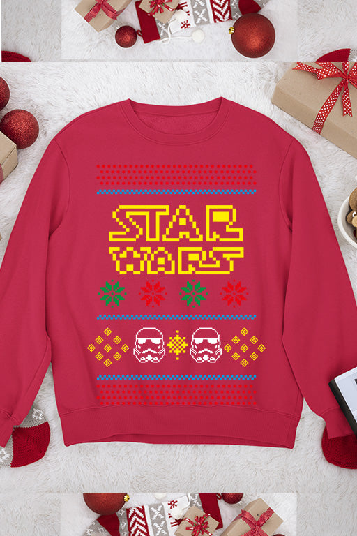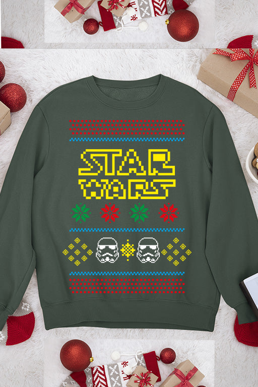 Unleash the force this holiday season with our eye-catching Christmas Sweatshirt featuring an UGLY yet irresistible design inspired by the iconic Star Wars logo and storm troopers. Embrace the spirit of Christmas with a touch of the galaxy far, far away!
