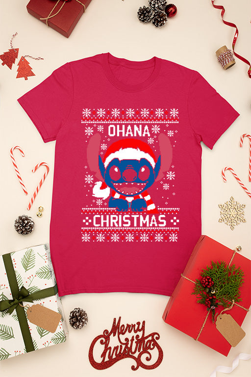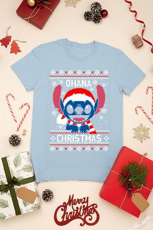 Crafted with care and creativity, this T-shirt is the perfect blend of comfort and holiday spirit. The vibrant colors and playful design showcase the unique bond of Ohana in a Christmas setting, sure to bring smiles all around.