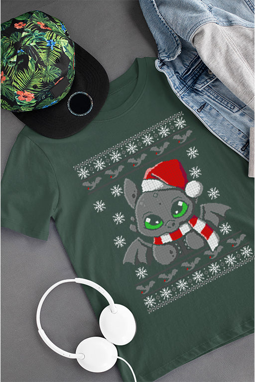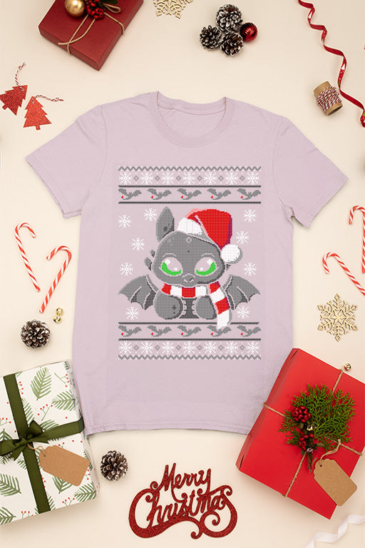 Transform your kid's Christmas wardrobe with this Ugly Design Kids Christmas T-shirt, featuring everyone's favorite dragon, Toothless, inspired by *How to Train Your Dragon*. Embrace the spirit of the season with a touch of edgy coolness that will make your little one stand out from the crowd.
