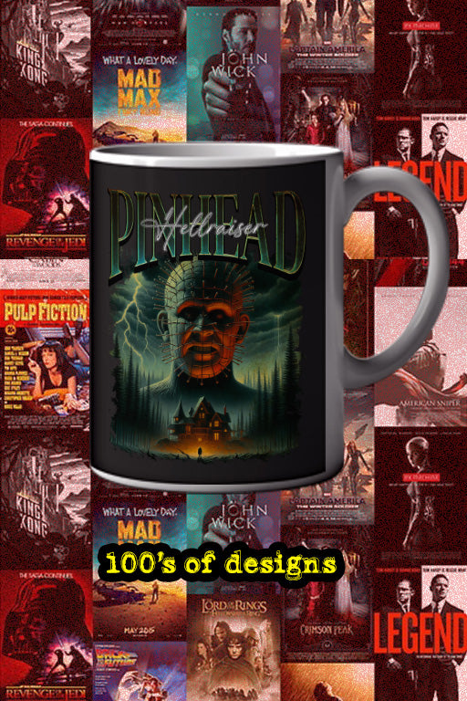 Make every sip an adventure with our Horror Film-themed 11oz Mug featuring Pinhead – a must-have for any true horror aficionado.