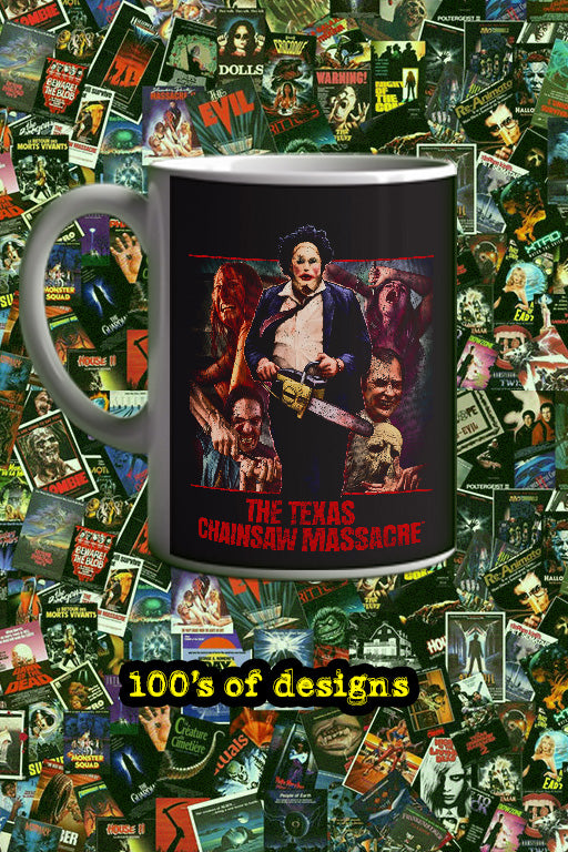 #HorrorFilmFans #LeatherfaceLovers #TexasChainsawChic #HorrorMovieMerch #ScreamQueens #ChainsawCraze #MacabreMug #GlobalShippingAvailable