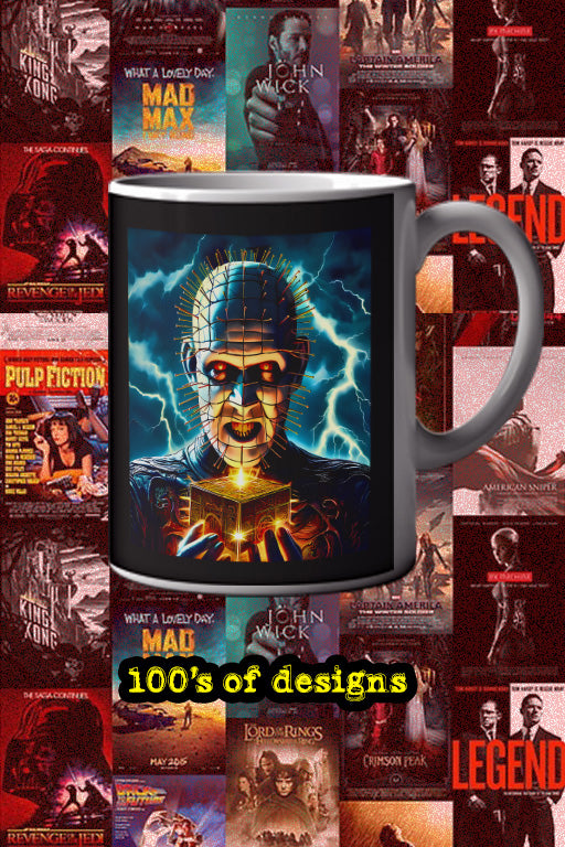 Halloween PinHead 11oz Mug | Horror Film Poster Design | Creepy Movie Buff Gift