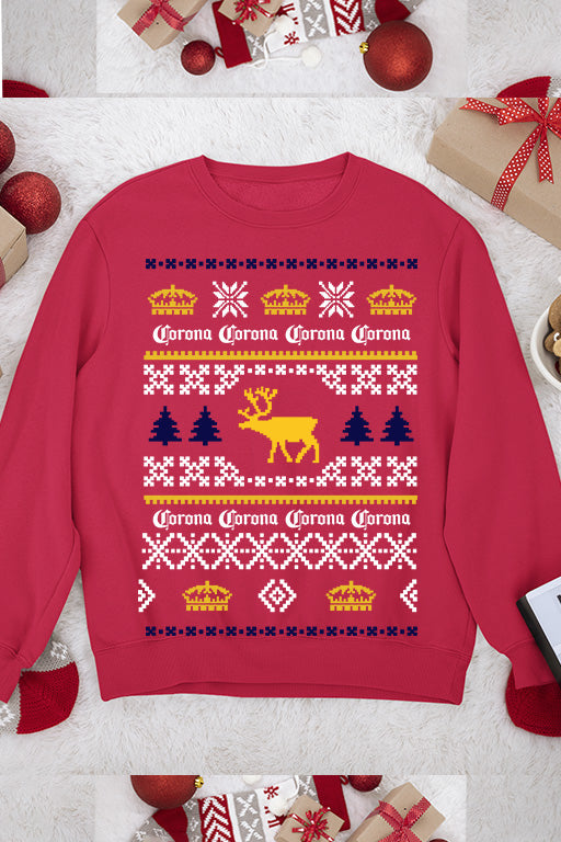 Get into the holiday spirit with our Christmas Sweater and raise a toast to the season in style! #ChristmasFashion #UglyChristmasSweater #CoronaBeerDesign #HolidayCheer #FestiveStyle