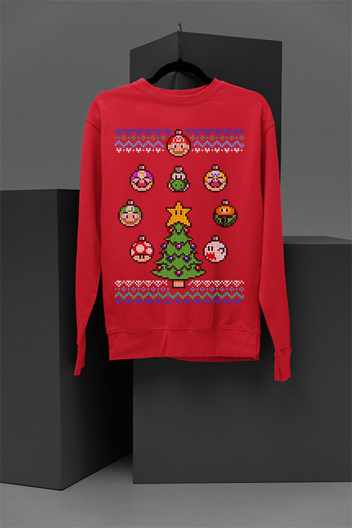 UGLY Retro Super Mario Bros Christmas Sweatshirt | 8-Bit Holiday Gamer Sweatshirt | N
