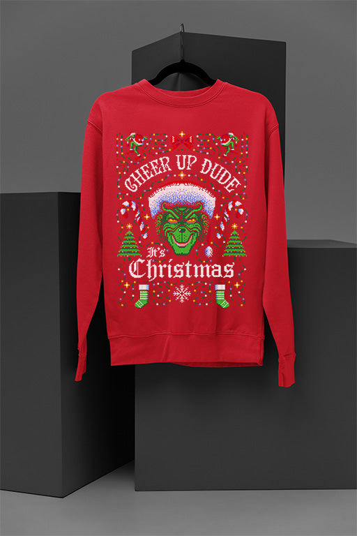 UGLY Grinch Cheers Up Dude Christmas Sweatshirt | Cheer Up Dude Design | Funny Ugly