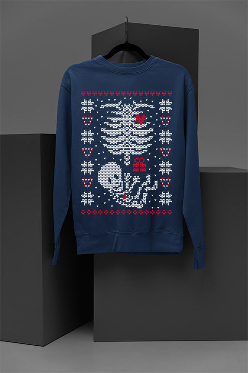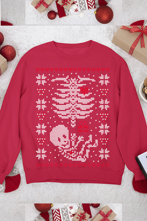 Embrace the spookiness of the holiday season with this Skeleton Christmas Sweatshirt! Featuring a delightfully ugly design that merges the festive cheer of Christmas with the creepy allure of skeletons, this sweatshirt is sure to turn heads at any holiday gathering.