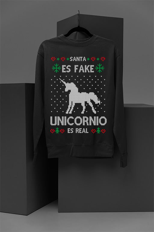 #SantaIsFake #UnicornsAreReal #ChristmasSweatshirt #FestiveFashion #UglyChristmasSweater