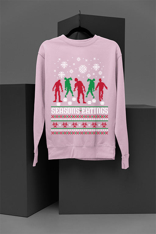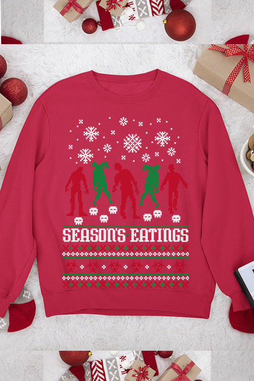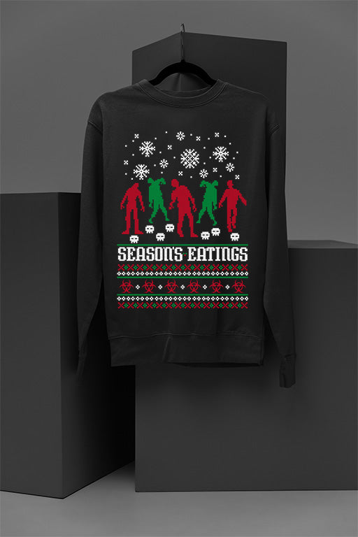 Step into the world of holiday horror with this jaw-dropping Christmas Sweatshirt. Featuring a shockingly UGLY design of Zombies devouring the seasons, this daring piece is not for the faint of heart. Dive deep into the dark side of the season with this edgy and unforgettable creation.