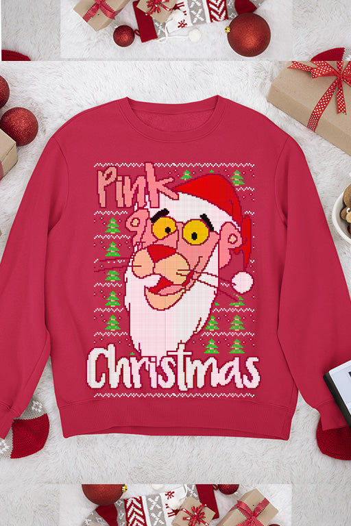 - Ugly Design featuring the iconic Pink Panther in pink Christmas attire
